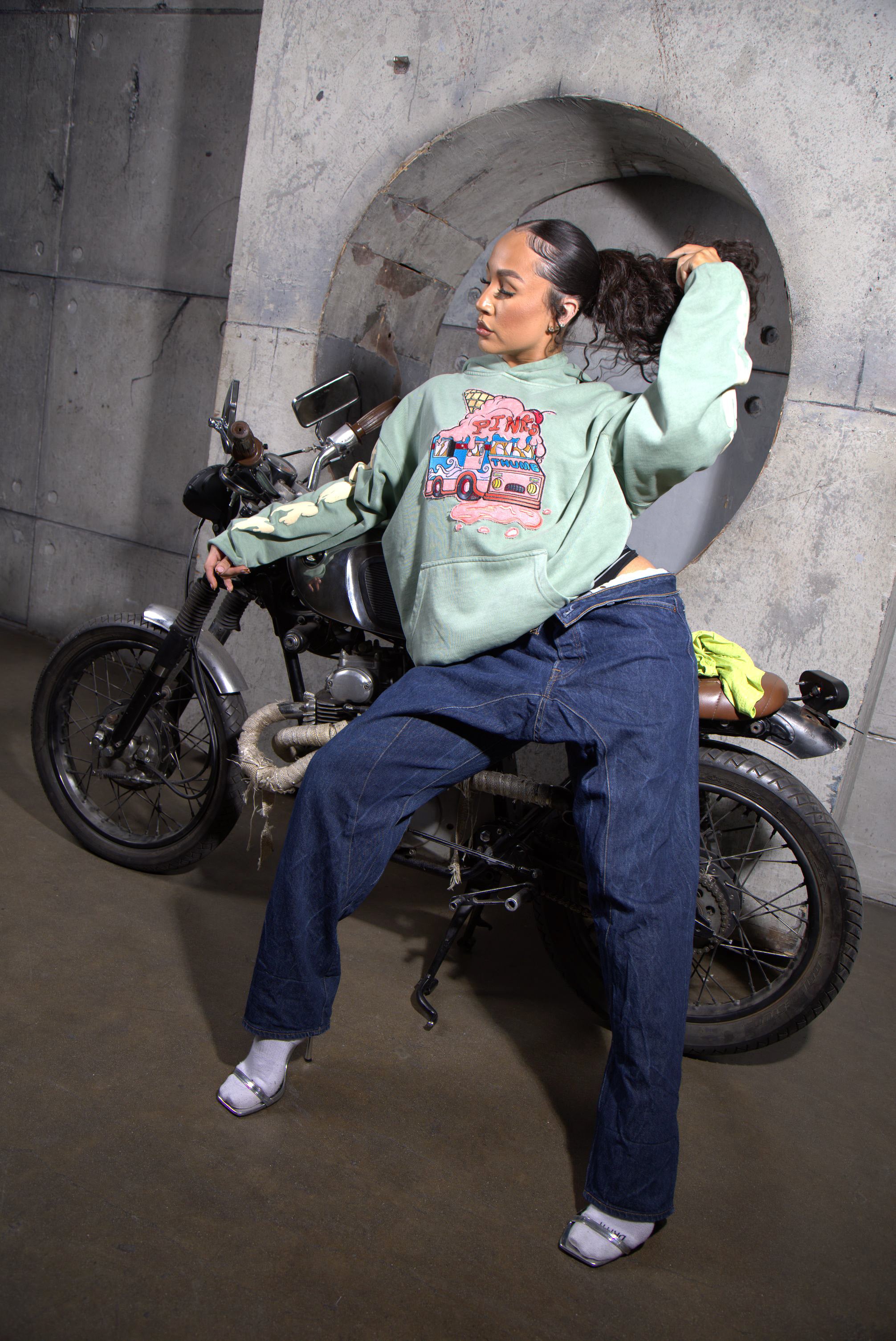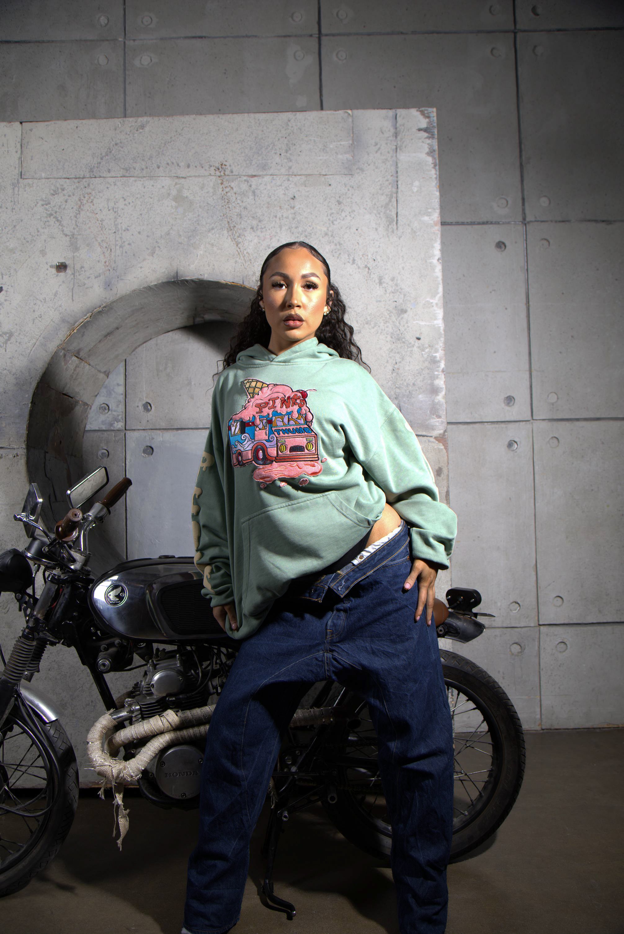 The everyday hoodie, reinvented by Pinky Thumb. Designed with our signature Pinky Thumb Ice Cream Truck graphic, this piece upgrades a streetwear essential through high quality detailing and an iconic silhouette. Crafted from custom premium fabric, it’s built to keep its structured shape while staying soft to the touch.
